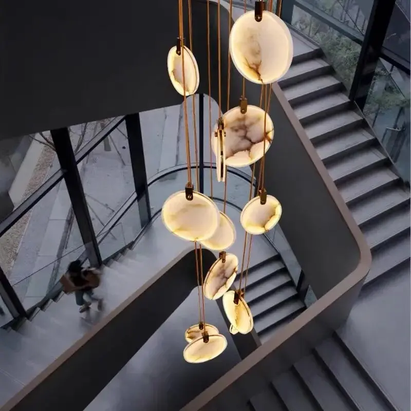 Tuya Marble Large Hanging Stairwell Lighting Chandelier